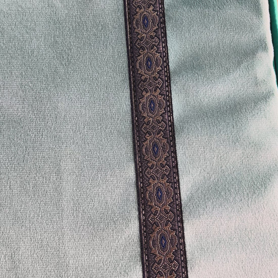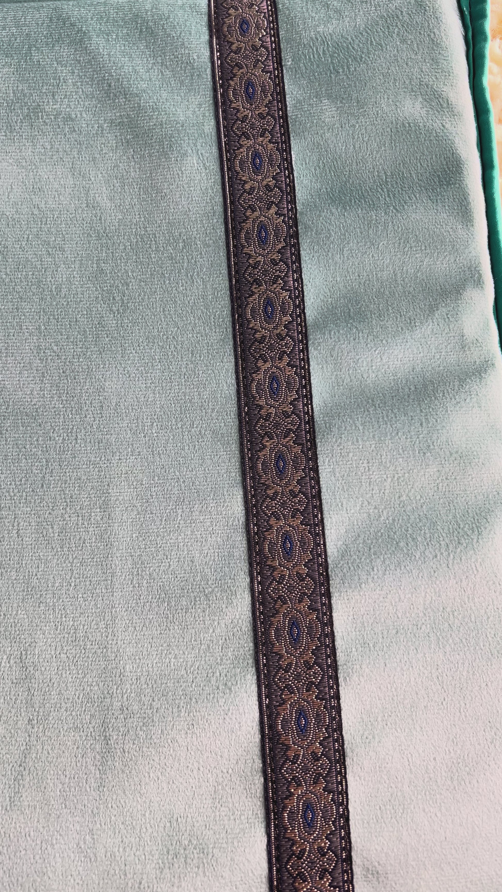Tapis de prière médical haut de gamme avec une finition en velours doux et un élégant motif mihrab brodé.